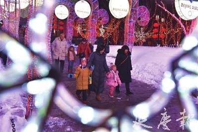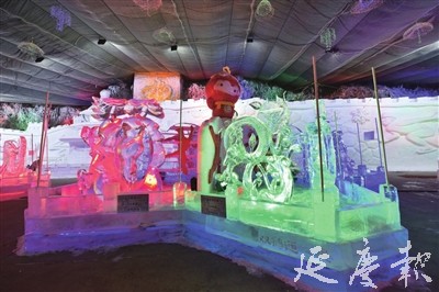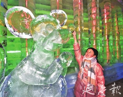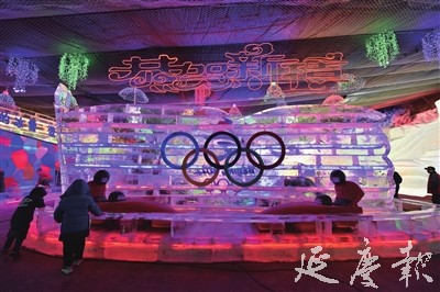 进入冰灯展示区,五个硕大冰雕组成的奥运五环标识,立体生动,“长城”“玉皇阁”元素的冰雕将延庆的壮美山河精彩演绎。“米老鼠”古灵精怪、“冰敦敦”憨态可掬、“冰雪运动员”身姿矫健、“冰上舞者”舞姿绰约……一件件生动的冰雪作品令人惊叹。在一侧墙体上,一幅幅雪雕作品栩栩如生,创作者匠心独运,各类作品令人目不暇接。孩子们在冰雪砌就的“长城”和“城楼”间追逐嬉戏,摄影爱好者们在七彩冰雪世界手执相机,记录下一个个精彩瞬间。
