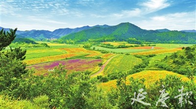 炫彩花海,连碧青山。赏一片花海,醉一片心田。