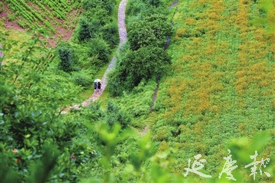 秋雨时节置身于花海,娇嫩的花蕊蓄满了露水,一阵轻风袭来,花枝轻颤,惊落一拘落入泥土,“滴答”作响。片片花瓣落下,铺满了山间小路。