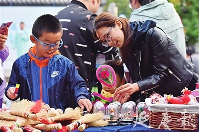 体验活动现场邀请到了非遗传承人、创意手作达人、文创工坊来到现场展示、售卖。来到现场参加活动的大人和小孩还可以体验盆窑陶艺制作、月饼制作、画兔儿爷、手工灯笼制作。制作完成后,参与者们将自己精心制作出的成品装好,拿回家与家人分享这一次新奇的体验。
